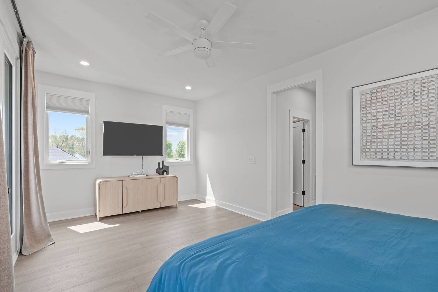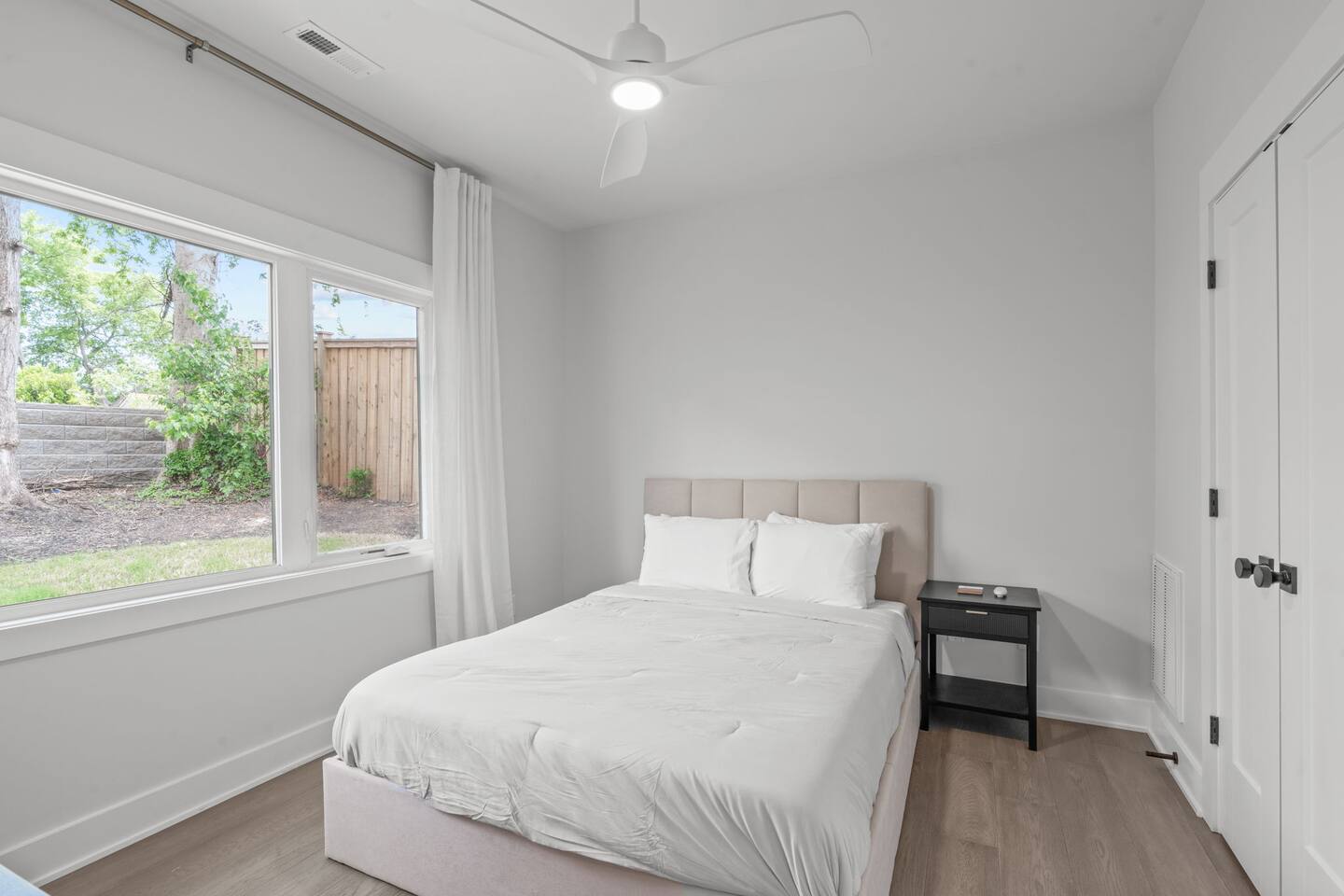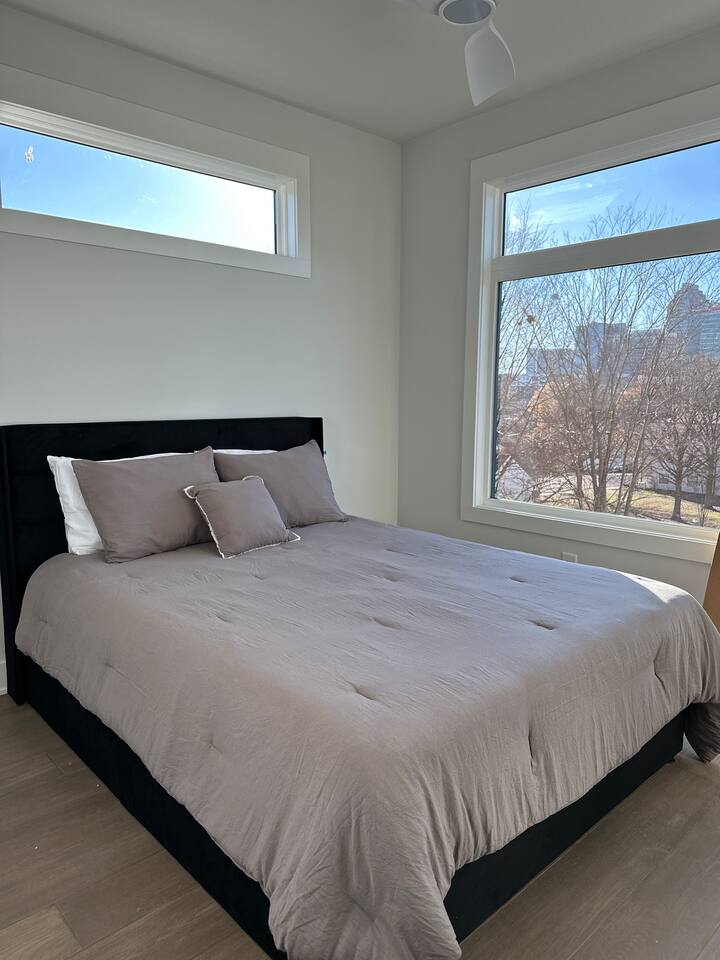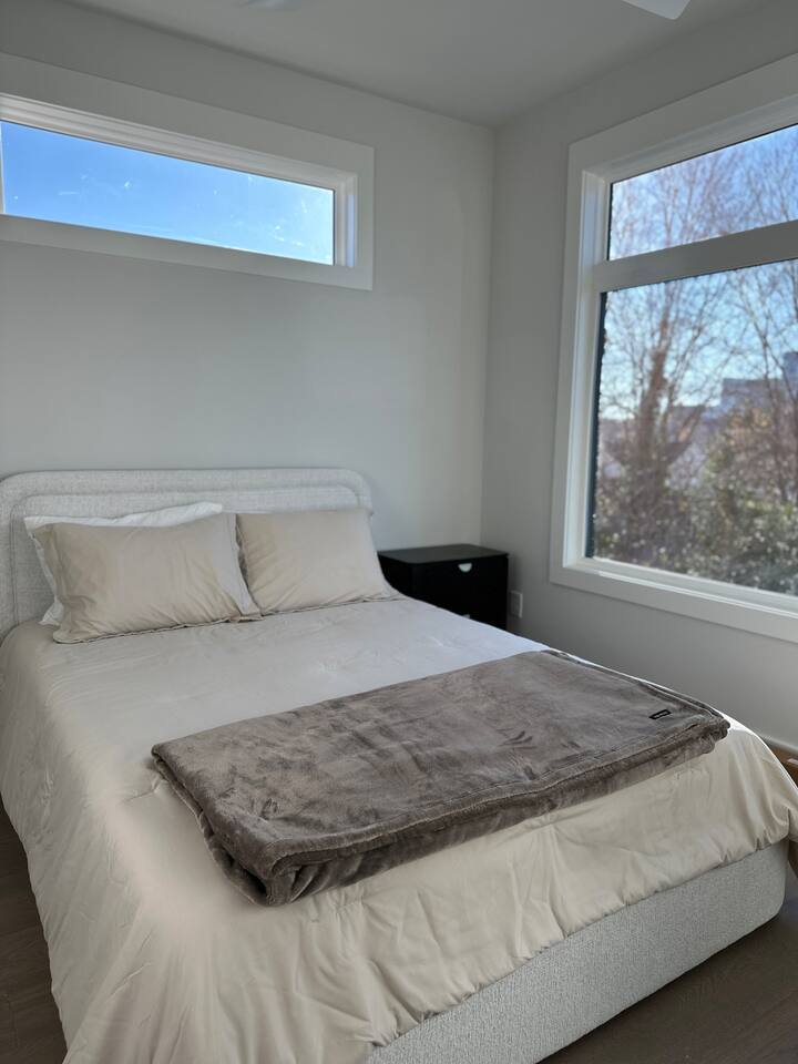 Bedroom 1: King bed, private bathroom, Ceiling Fan, 55" smart TV, walk-in closet Bedroom 2: Queen bed, private bathroom, Ceiling Fan Bedroom 3: Queen bed, private bathroom, Ceiling Fan Bedroom 4: Queen bed, private bathroom, Ceiling Fan Living Room: Comfy sofa, 55” smart TV and work station Kitchen: Fully equipped, stainless steel appliances, Keurig coffee maker, complimentary coffee and tea Rooftop: Lounge chairs General: High-speed WiFi, complimentary shower gel, shampoo and conditioner, hair dryer, iron, washer/dryer Parking: Driveway with garage can fit up to 2 cars (1 in garage, 1 in driveway). Plenty of free additional parking on the main street (Hargett St) just abide by city street signs. Do not park in marked spaces across the street as those belong to the townhomes and you will be towed. EV Outlet: We have an EV Outlet in the garage you just have to bring your own charger