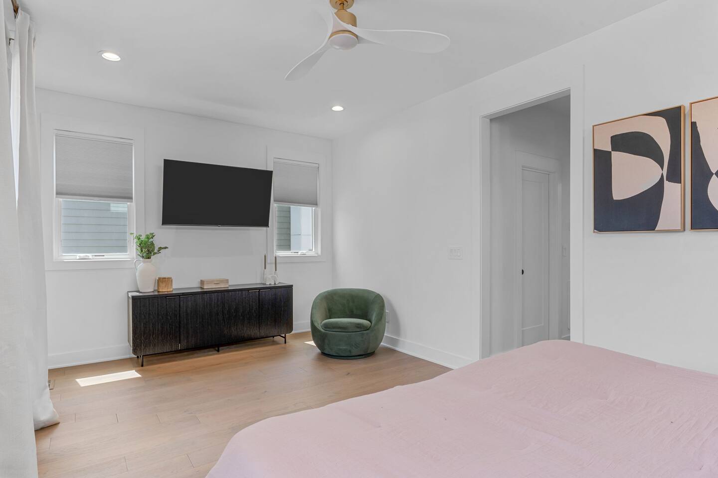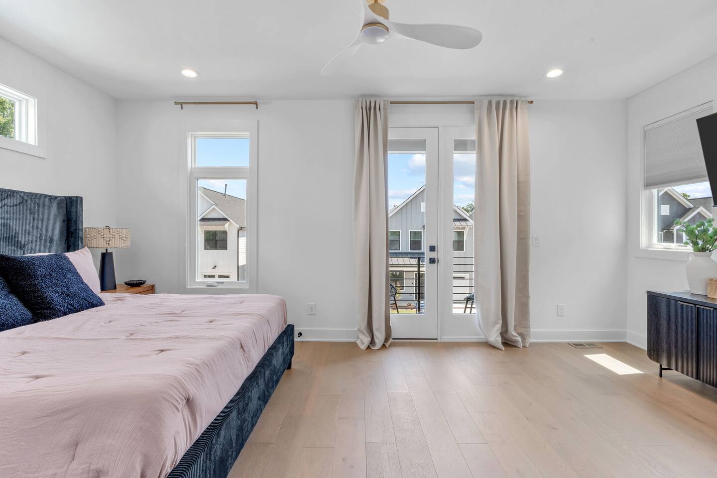 Bedroom 1: King bed, private bathroom, Ceiling Fan, 55" smart TV, walk-in closet Bedroom 2: Queen bed, private bathroom, Ceiling Fan Bedroom 3: Queen bed, private bathroom, Ceiling Fan Bedroom 4: Queen bed, private bathroom, Ceiling Fan Living Room: Comfy sofa, 55” smart TV and work station Kitchen: Fully equipped, stainless steel appliances, Keurig coffee maker, complimentary coffee and tea Rooftop: Full outdoor kitchen, Dining area, lounge chairs General: High-speed WiFi, complimentary shower gel, shampoo and conditioner, hair dryer, iron, washer/dryer Parking: Driveway with garage can fit up to 2 cars (1 in garage, 1 in driveway). Plenty of free additional parking on the main street (Hargett St) just abide by city street signs. Do not park in marked spaces across the street as those belong to the townhomes and you will be towed. EV Outlet: We have an EV Outlet in the garage you just have to bring your own charger