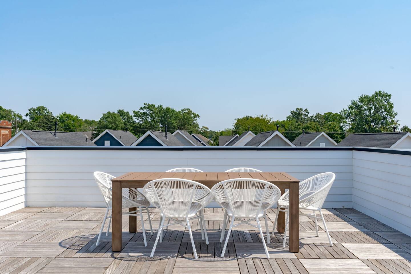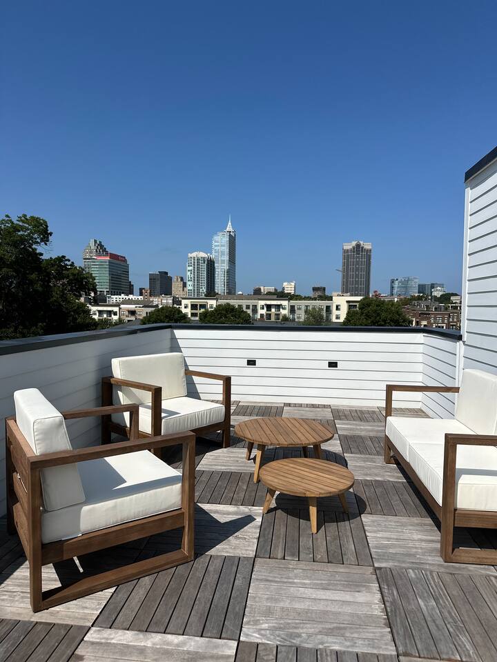 Great pick for Corporate Rental or Large Family! 4bedroom/4bath Ensuite. You can’t beat this location & view! This newly Modern built home is your front-row ticket to a skyline view of Downtown Raleigh from rooftop terrace that'll make your jaw drop! ✔ Steps away from the best dining experiences ✔ Just minutes to NC State, Red Hat Amphitheater, Museums, galleries, local music venues, coffee shops, bakeries, breweries, restaurants, parks ✔ High-speed internet ✔ EV Outlet - Bring your charger!