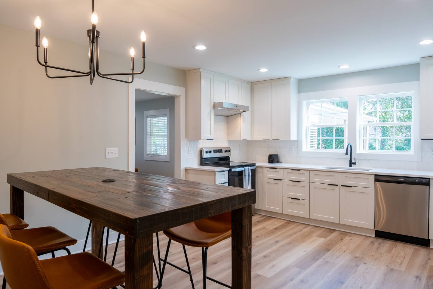 Escape to this charming, newly renovated gem where the whole family can unwind. Conveniently situated near all Durham has to offer. This is a ranch style, single-story home features a fully equipped kitchen and a washer and dryer for your convenience. This home is located in a quiet neighborhood, ideal for those seeking a peaceful retreat! 9 mins to Duke University 10 mins to Duke Hospital 11 mins to Duke Garden 13 mins to Downtown Durham 20 mins to RDU Airport 25 mins to Chapel Hill