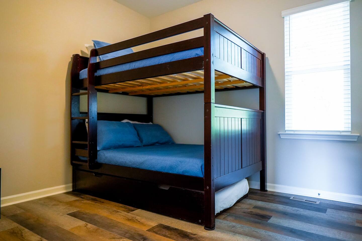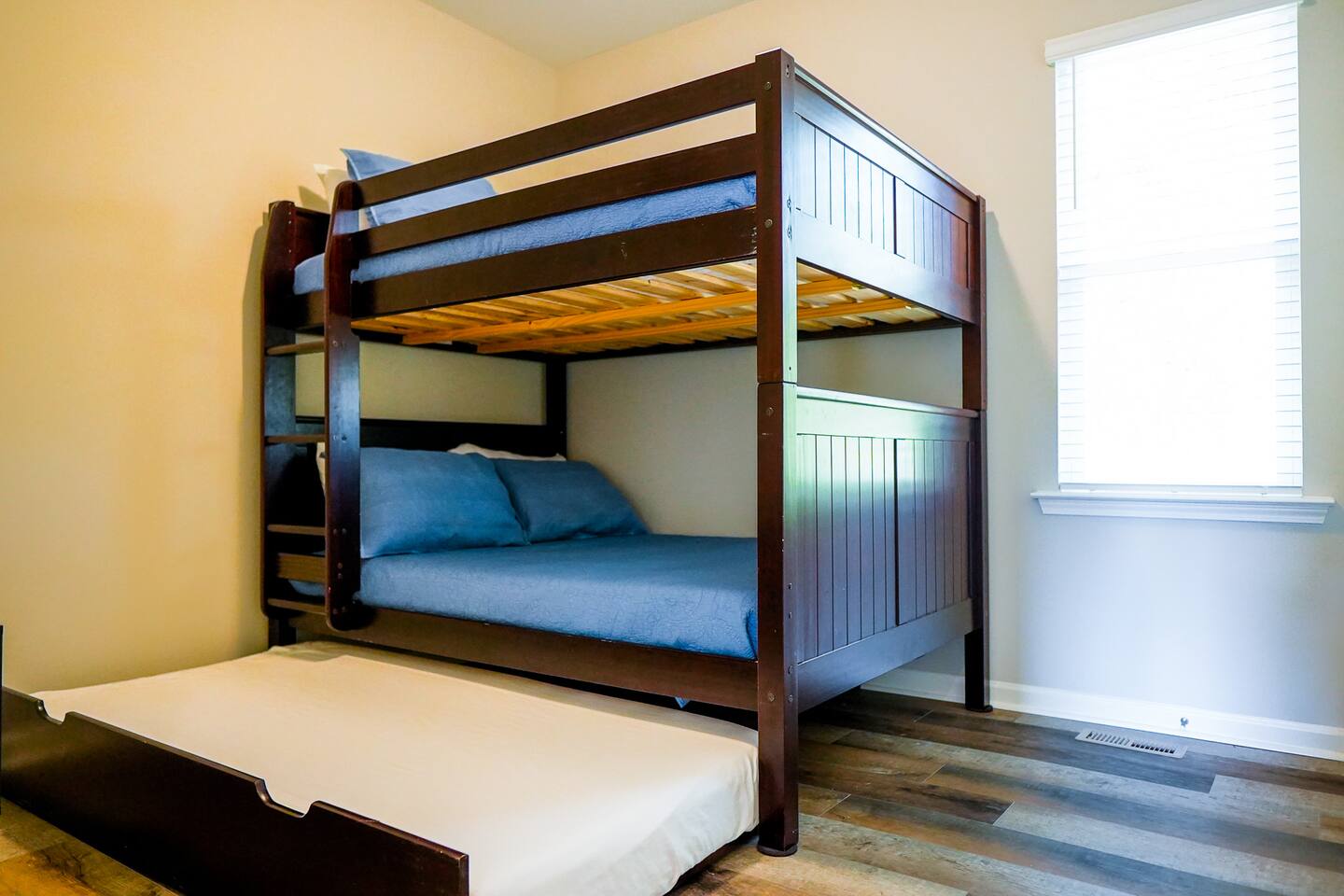 Living Room - Smart TV Primary - King Bed with memory foam, Smart TV Bed 2 - Queen Bed with memory foam Bed 3 - Full Bunk Beds with memory foam and trundle Queen Air mattress Available