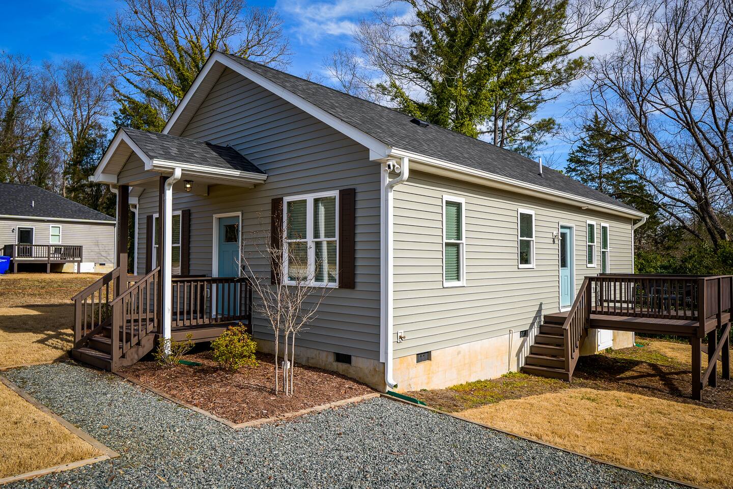 Welcome to your mid-century cottage! You will experience a peaceful getaway in this new construction home in a quiet neighborhood. This is a ranch style, single story home with a huge yard! You will have a fully equipped kitchen and a washer and dryer. 9 mins to Duke University 10 mins to Duke Hospital 13 mins to Downtown Durham 20 mins to RDU International Airport 25 mins to Chapel Hill